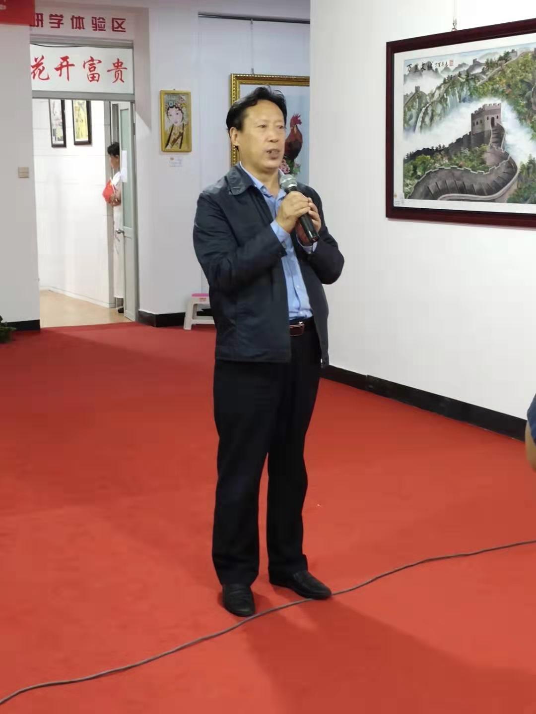 郑氏砂艺文化有限公司董事长郑铁军在开幕式上致辞,致辞中他介绍了郑氏砂艺在党和国家的关怀下,稳步向前的发展历程,并对今年在蘑菇峪镇八个贫困村的扶贫成果做了汇报。