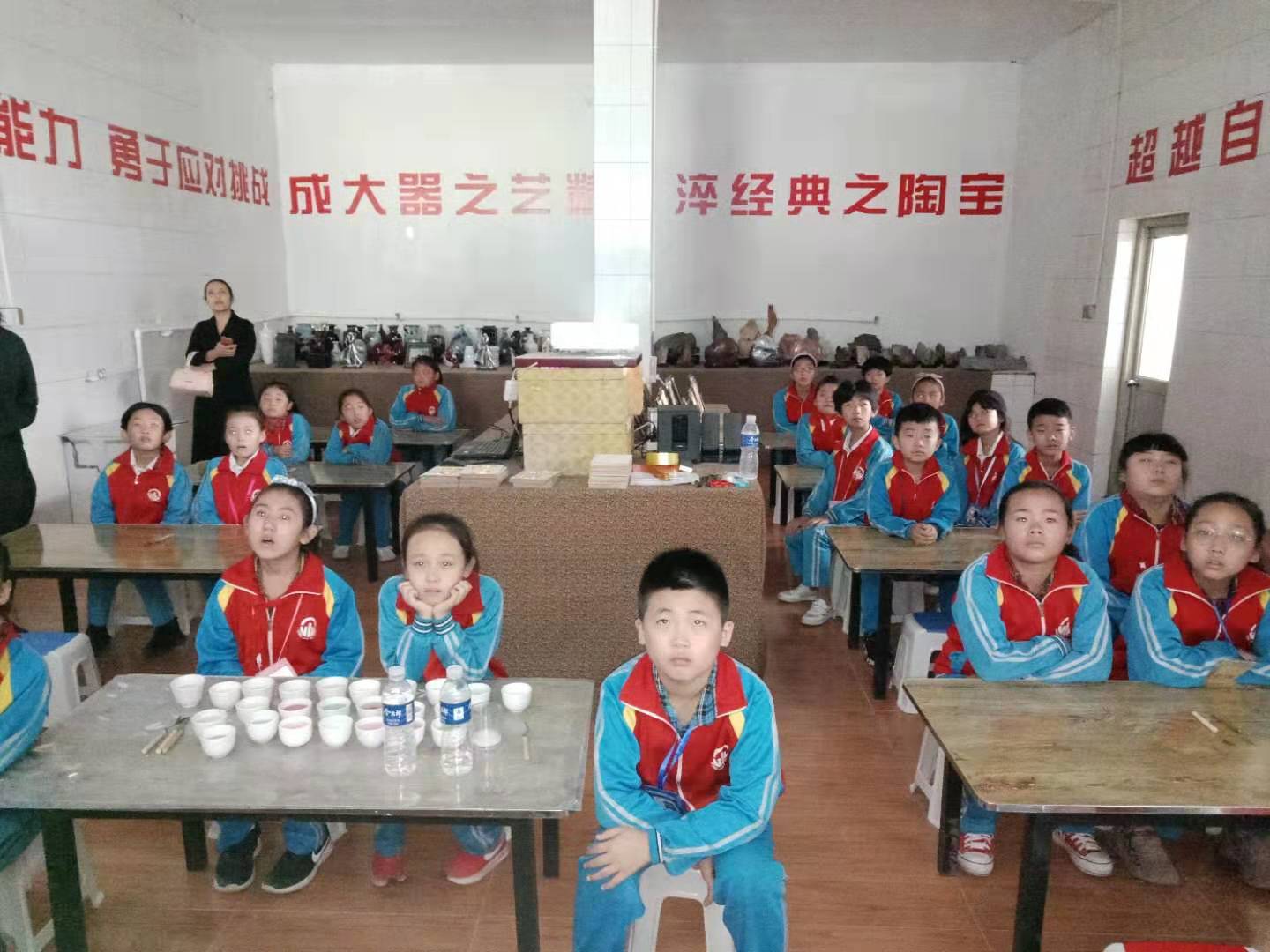 一小研学学生在看郑氏砂艺教学视频