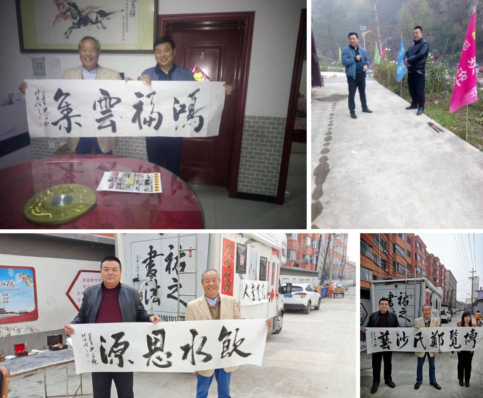 10月9日。副县长周庆耕(挂职)来到郑垚文旅山庄开展扶贫调研。并亲切接见了前来我县写生观光的北京市书法家协会会员刘佑之老先生。刘老是一位京畿德高望重的老书法艺术家,退休后,立志走遍全国400个县,处处留下行云流水般的诗情。在郑氏砂艺文化有限公司所属“郑垚文旅山庄”,文旅山庄题词,并为周县长题写了《鸿福云集》,充分展现了老艺术家的风采。山庄的山、山庄的水,山庄的饮食香又美,令刘老和随行客人流连忘返。随后在郑氏砂艺文化有限公司董事长郑铁军陪同下,刘老兴致勃勃地来到郑氏砂艺兴隆展厅仔细观赏了美轮美奂的砂艺展品。精致的画面、灵巧的工艺、独特的匠心,令老人家赞不绝口。刘老欣然提笔为郑氏砂艺文化有限公司题写了“博览郑氏砂艺”,“饮水思源”,为公司工会题写了“博学笃志”。