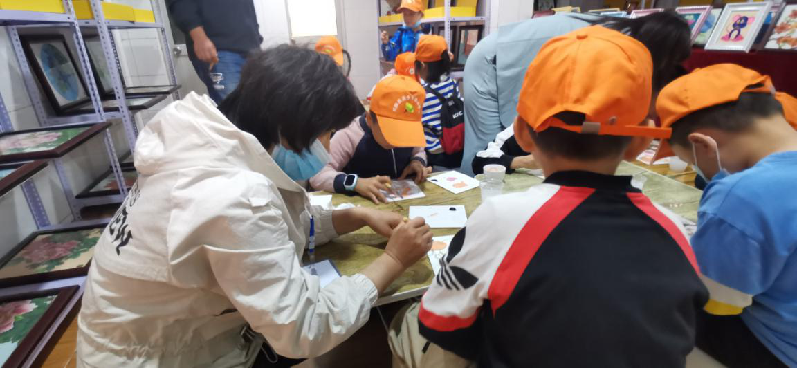 参加此次研学活动的师生共计180余人,小朋友们在我公司讲解员的带领下兴致勃勃的参观了郑氏砂画,了解了郑氏砂艺“非遗”文化的发展历程、工艺技术和传承意义,观看了砂画制作解析视频,最后进行了砂画的实际操作。