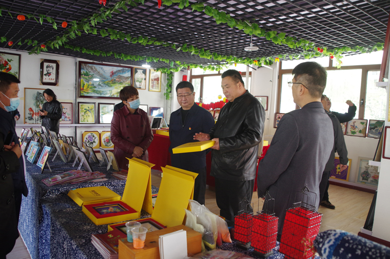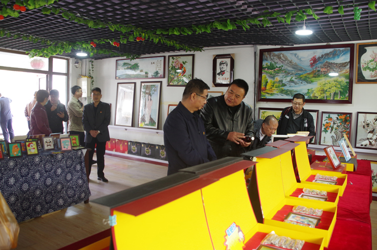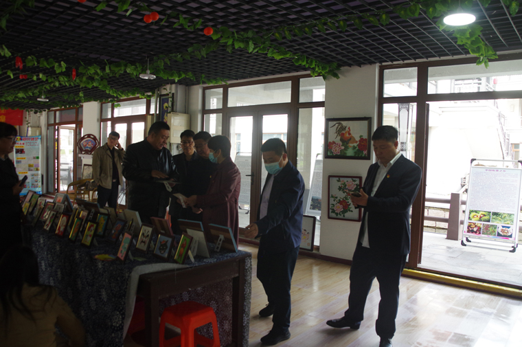 兴隆县委副书记李剑、县宣传部长赵辉、县常务副部长贾永、县旅游和文化广电局局长庄云飞、县文联主席王久侠等领导在董事长郑铁军的陪同下,参观了郑氏砂艺非遗体验馆,期间领导听取了郑铁军董事长关于非遗文化方面的汇报,并对郑氏砂艺非遗文化传承和发展行了深入了解。考察团在参观了郑氏砂艺十二花神、兴隆风景、脸谱等系列作品之后,对郑氏砂艺技艺给予了高度评价和肯定,表示非物质文化遗产是中华民族精神、民族文化的积淀,既是对中华5000年文明史的认同也是传承文明、建设先进文化的根基,并鼓励郑氏砂艺未来在非遗文化发展中发挥先锋模范作用,为推动兴隆县文化产业发展发挥巨大优势和潜力。