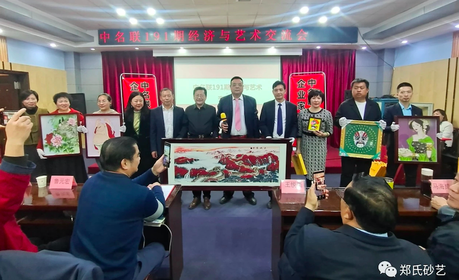 鉴于签约中名联后,给自己带来的巨大收益,郑铁军很是感慨,他介绍说“中名联——中国艺术界的伯乐。中名联让我想起了唐朝文学家韩愈《马说》中说的:“世有伯乐,然后有千里马。千里马常有,而伯乐不常有。”中名联便是中国艺术界的伯乐,为中国艺术家搭建了更高的发展平台。通过参加中名联举办的一系列文化交流活动,认识了很多艺术界的名家,领略了戴本领先生在中华文化方面的高深领悟,感受了赵萍老师在艺术方面的独特见解。不但开阔了眼界、提高了认知,还通过中名联搭建的平台将“非遗”郑氏砂艺(画)作品推进各国大使馆,并逐步走出国门、走向世界,感谢中名联,感谢戴本领先生和赵萍女士的关怀。观看了中名联创始人戴总的视频后非常激动,中名联是不一样的一个平台。他们以宏扬国粹艺术,成就工艺美术大师人才,为我们在前进的路上指明了方向。我感恩戴总为工艺美术大师创造了这么好的文化平台,感恩中名联团队各位老师的辛勤付出,感恩推荐我的刘秀华老师。我愿为发扬中华传统文化而努力。”