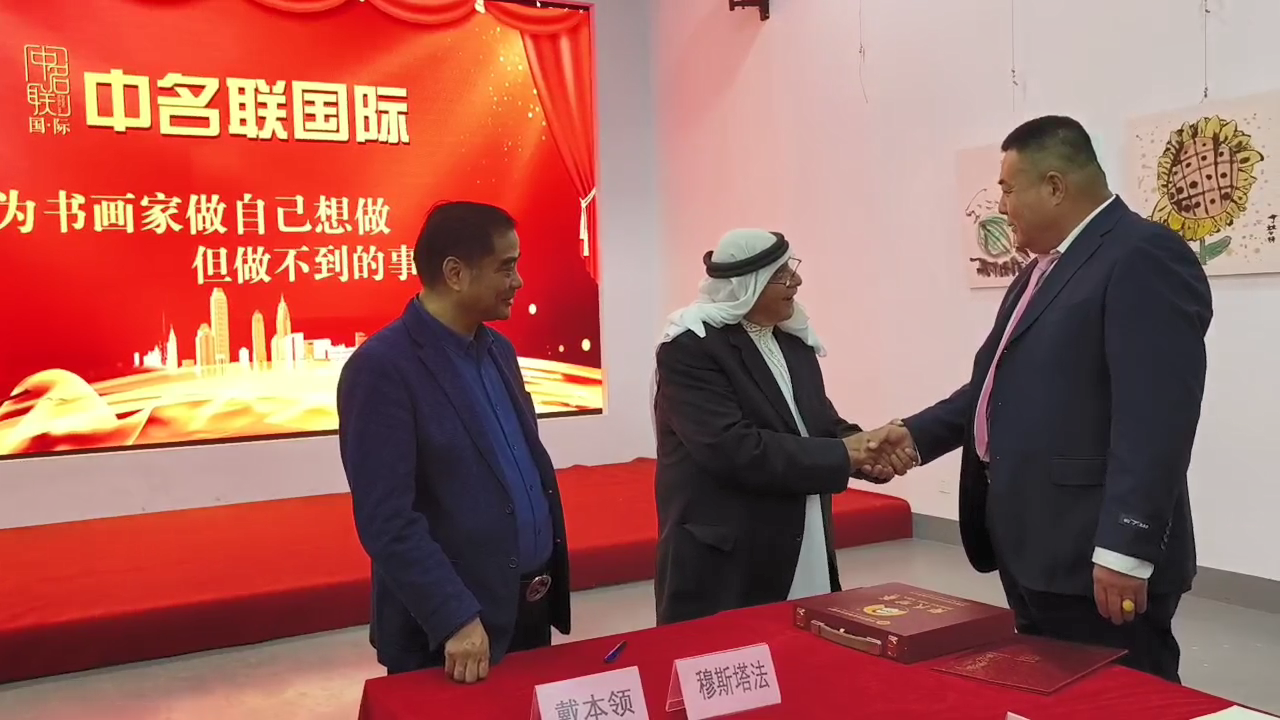 2023年10月29日,应中名联邀请,并通过中名联国际平台,郑氏砂艺执行董事长郑铁军同巴勒斯坦驻华大使穆斯塔法·萨法日尼展开了真挚而又热情的交流,大使表示十分尊重和热爱中国的传统文化,尤其是高度赞赏了郑氏砂艺(画)在艺术方面达到的深厚造诣,并将郑铁军砂画作品《牡丹》选作国礼正式收藏,同时授予郑铁军为中巴文化交流使者荣誉称号。