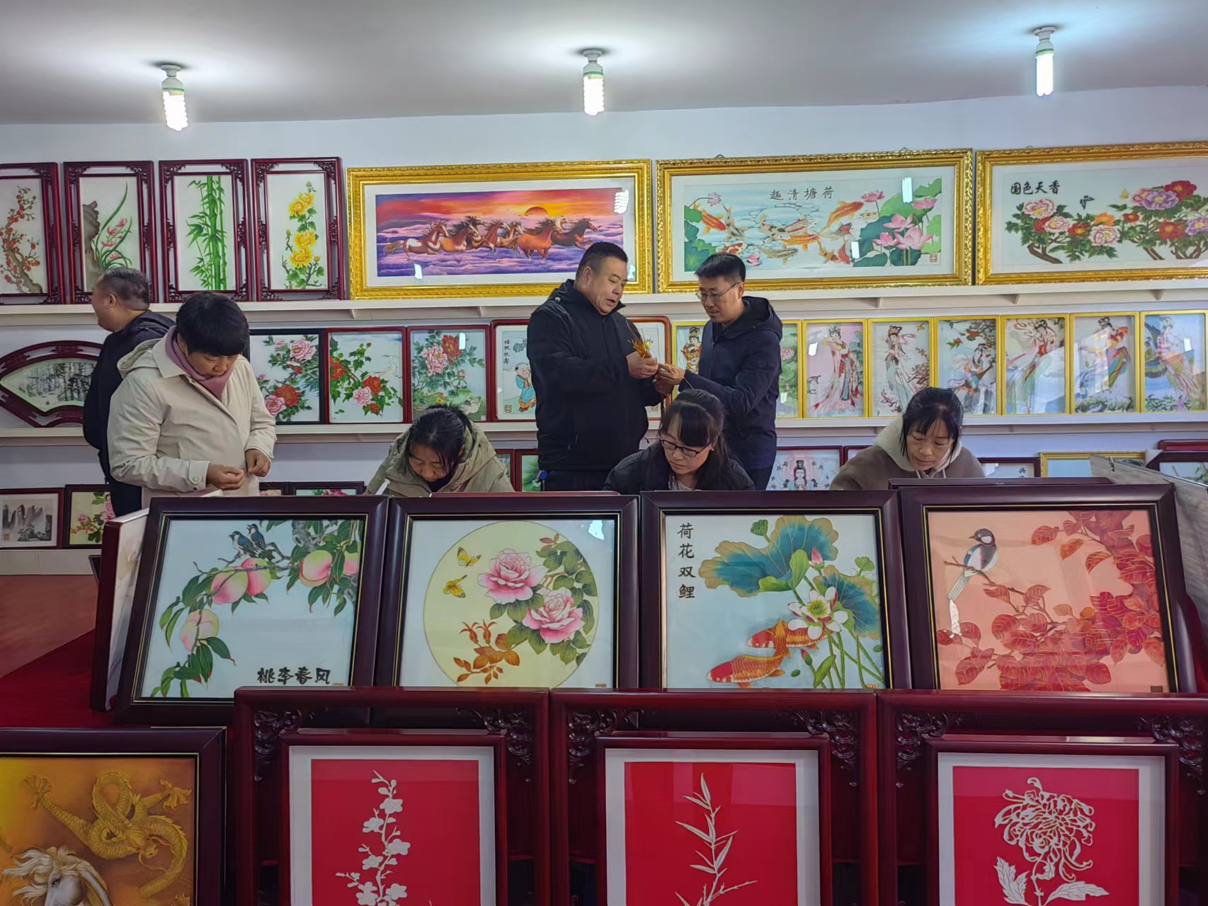 丁宇超副部长一行在郑氏砂艺董事长郑铁军的陪同下,逐一参观了郑氏砂艺展览馆和文化名家工作室,观看了技师的砂画制作手法,以及砂画主要材质和制作步骤,对郑氏砂艺传统技艺颇为惊讶和感叹,赞叹一幅幅栩栩如生的砂画作品,就是我们的画师用一双双纤纤玉手这样一点一点地制作完成的,简直是妙手回春,点砂成金。