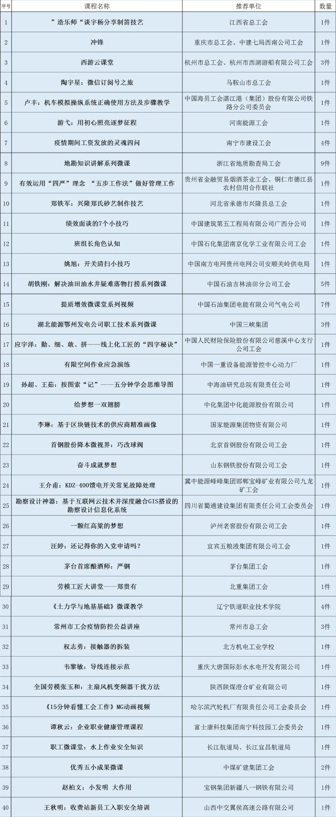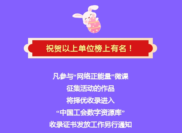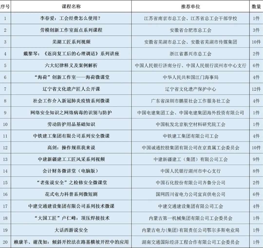 由中华全国总工会、中央网信办主办,中国工人出版社承办的2020年度“网聚职工正能量 争做中国好网民”网络正能量微课征集活动自2020年5月全面启动以来,截至9月4日报名结束,共收到来自全国31个省、自治区、直辖市总工会以及产业工会、国有企业和私营企业推荐的微课作品1500余部。