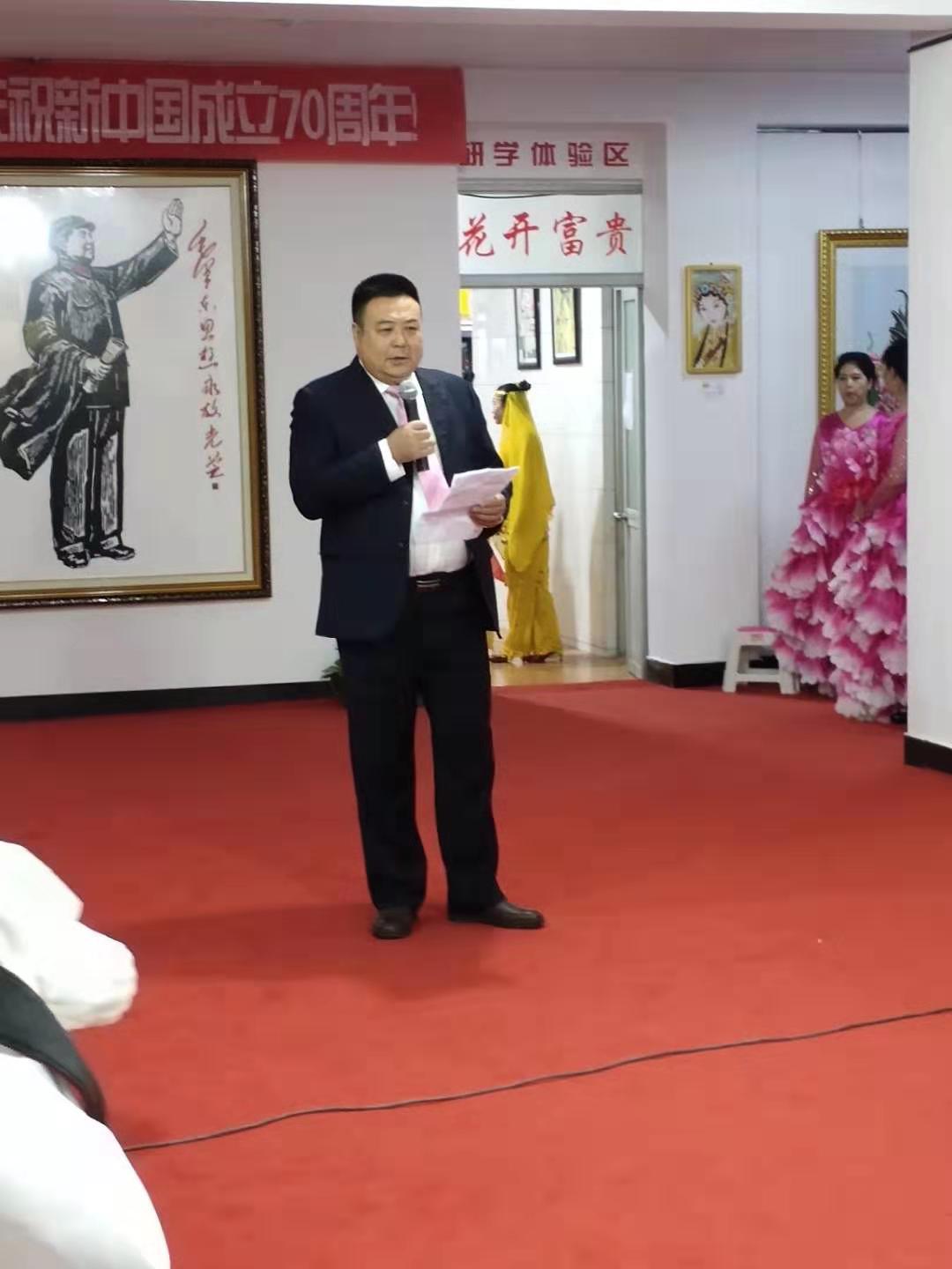 郑氏砂艺文化有限公司董事长郑铁军在开幕式上致辞,致辞中他介绍了郑氏砂艺在党和国家的关怀下,稳步向前的发展历程,并对今年在蘑菇峪镇八个贫困村的扶贫成果做了汇报。