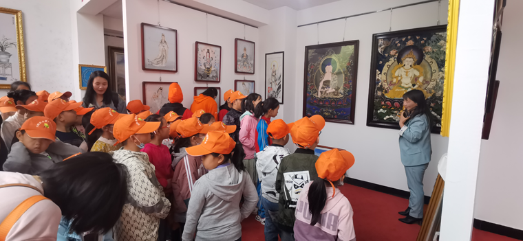 参加此次研学活动的师生共计180余人,小朋友们在我公司讲解员的带领下兴致勃勃的参观了郑氏砂画,了解了郑氏砂艺“非遗”文化的发展历程、工艺技术和传承意义,观看了砂画制作解析视频,最后进行了砂画的实际操作。