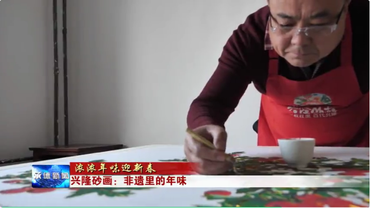 文化进万家,非遗过大年。2023年1月22日,大年初一,承德电视台《承德新闻》栏目对河北省非物质文化遗产郑氏砂艺进行了报道,播报中题为《浓浓年味迎新春——兴隆砂画:非遗里的年味》的采访介绍了郑氏砂艺的起源、传承和发展,展现了砂画的制作技艺、产品种类和砂画新春伴手礼。同时,借此平台郑氏砂艺执行董事长郑铁军携全体员工向全市人民送上了新年祝福!在新春之际,琳琅满目的砂画作品为家乡的父老乡亲带来了一场视觉盛宴,为大众增添一份新春的喜悦。