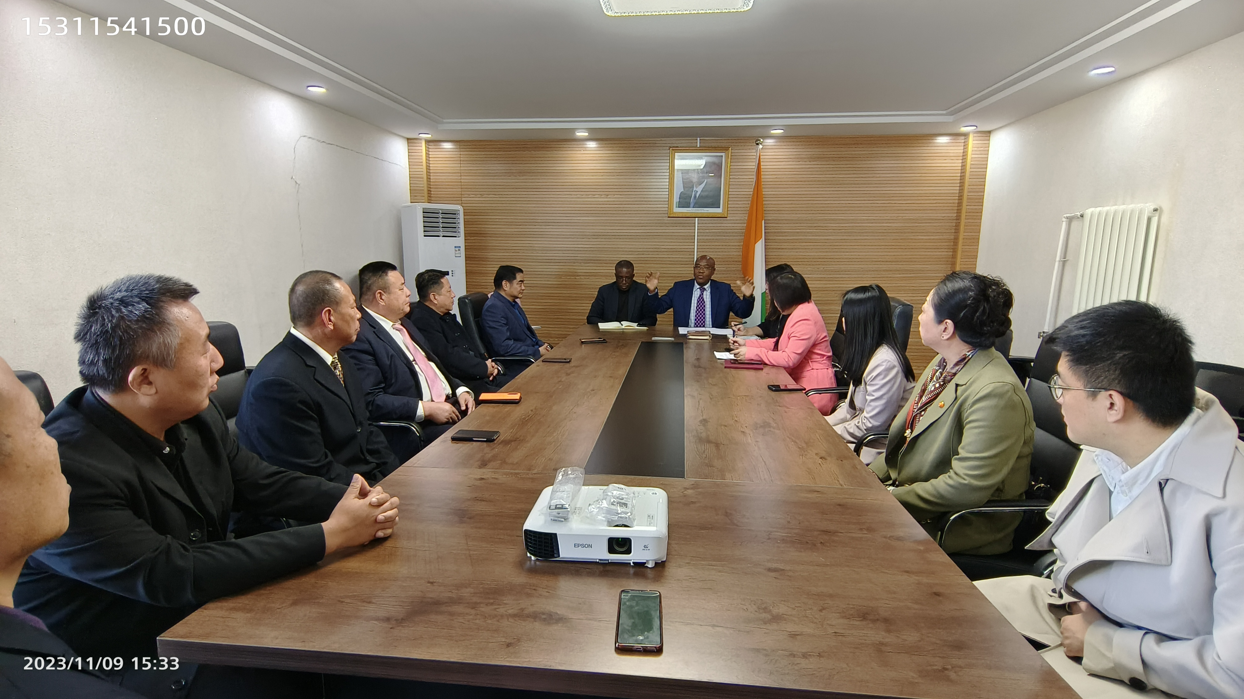 会议期间,科特迪瓦驻华大使馆文化参赞、科特迪瓦驻华大使馆旅游参赞、科特迪瓦驻华大使馆商务参赞同郑铁军董事长进行了愉快高效的交流。郑铁军董事长详细介绍了郑氏砂艺(画)的产品特色和经营方针,并现场展示了郑氏砂艺(画)非遗艺术品,大使馆对郑氏砂艺作品的技艺和精美程度表示惊叹和赞扬,并邀请郑铁军董事长考察科特迪瓦!