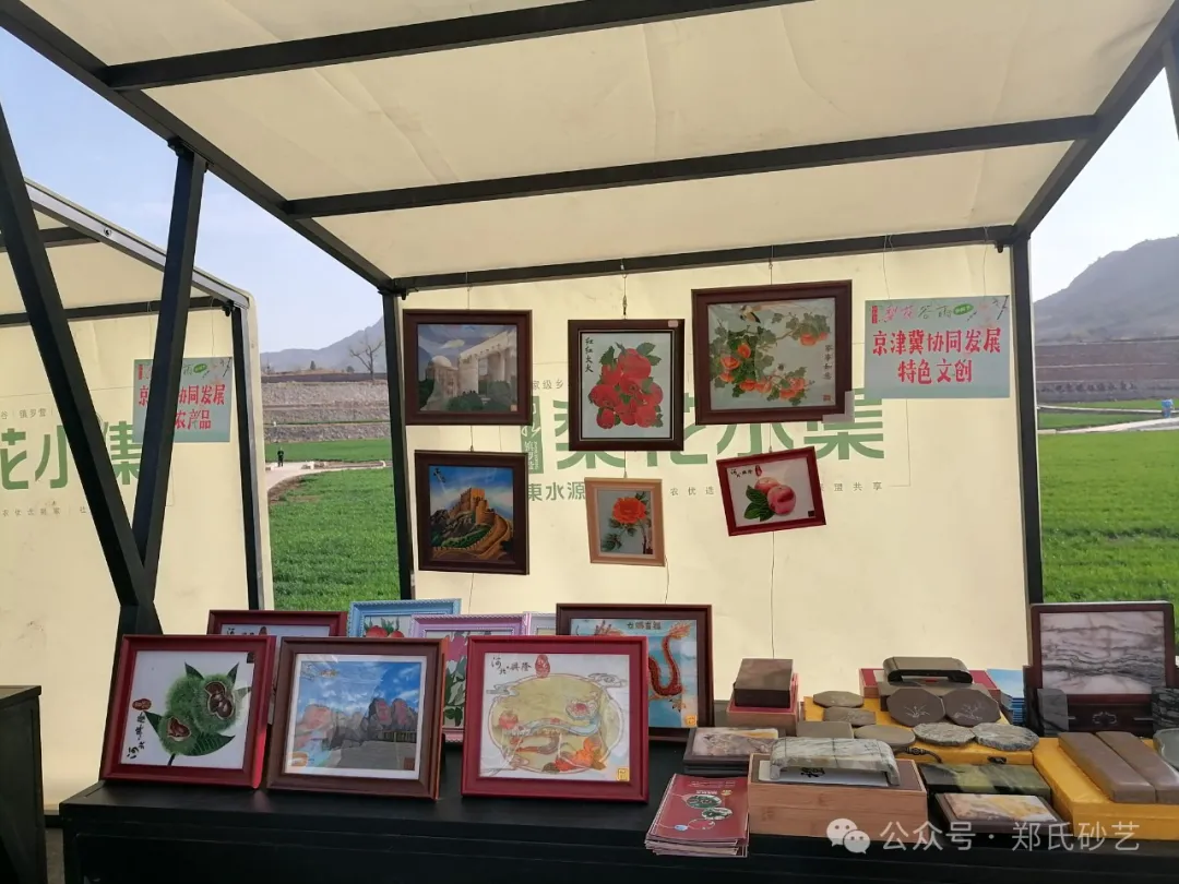 “忽如一夜春风来,千树万树梨花开” 春风正好,花开有期。2024年4月8日上午,北京市平谷区镇罗营镇人民政府举办的以“千载梨花颂、花漾镇罗营”为主题的梨花谷雨文化节活动拉开帷幕,为营造“传统文化+梨花美景”的活动氛围,郑氏砂艺受邀参加了此次活动,并精心挑选了20余幅精品砂画参加展出,展出作品涵盖了红火(山楂)、吉利(板栗)、平安(苹果)、天文台、兴隆山风光等兴隆地区众多的特色产品和独特景点,展出期间,郑氏砂艺(画)作品以其材质的新颖独特,制作手法的精妙绝伦,画面内容的丰富多彩,吸引了众多游客驻足观赏,成为了自媒体和游客的拍摄打卡地。郑氏砂艺用自己的艺术方式充分地向北京人们展示了兴隆的文化特色,同时为平谷“梨花节”增添了浓厚的文化气息。