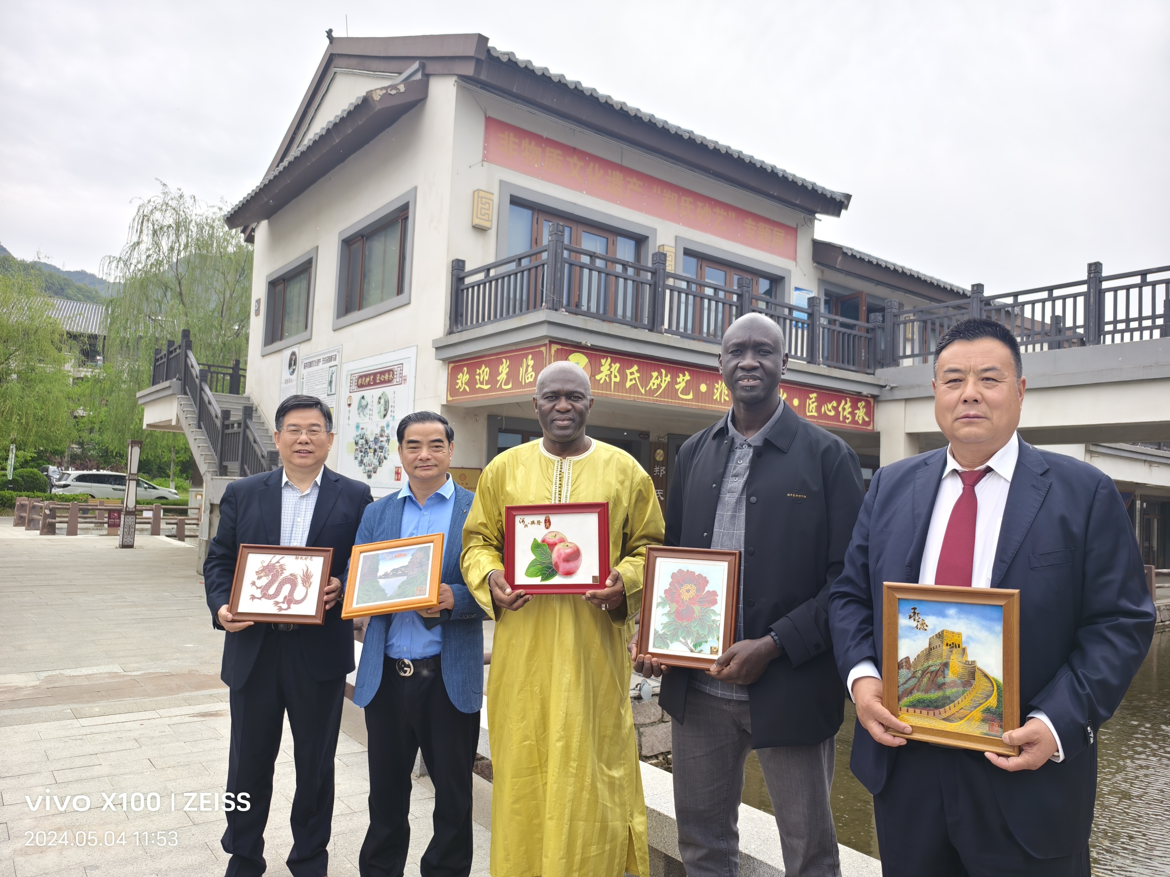 (图片说明:中名联将携各国驻华使团共同对郑氏砂艺展开系列考察、代言、出口贸易、落地文化经贸服务中心,从左至右分别是:郑氏砂艺董事长郑铁军、邯郸市华冶工贸有限公司党委书记、董事长张书明、塞内加尔驻中国大使馆副官阿坝·瓦德上校、中名联戴本领、科特迪瓦共和国驻华大使馆国防武官阿达马科内空军准将)