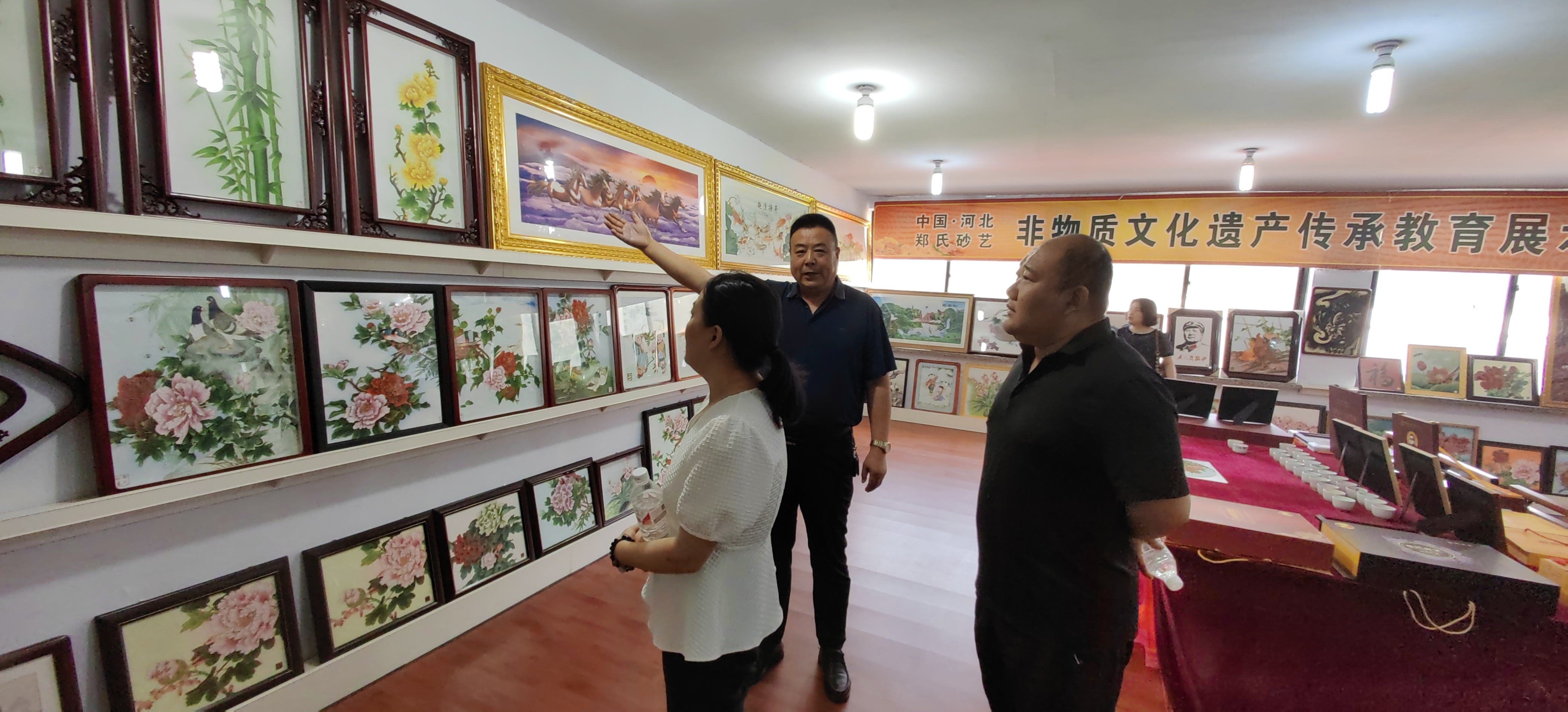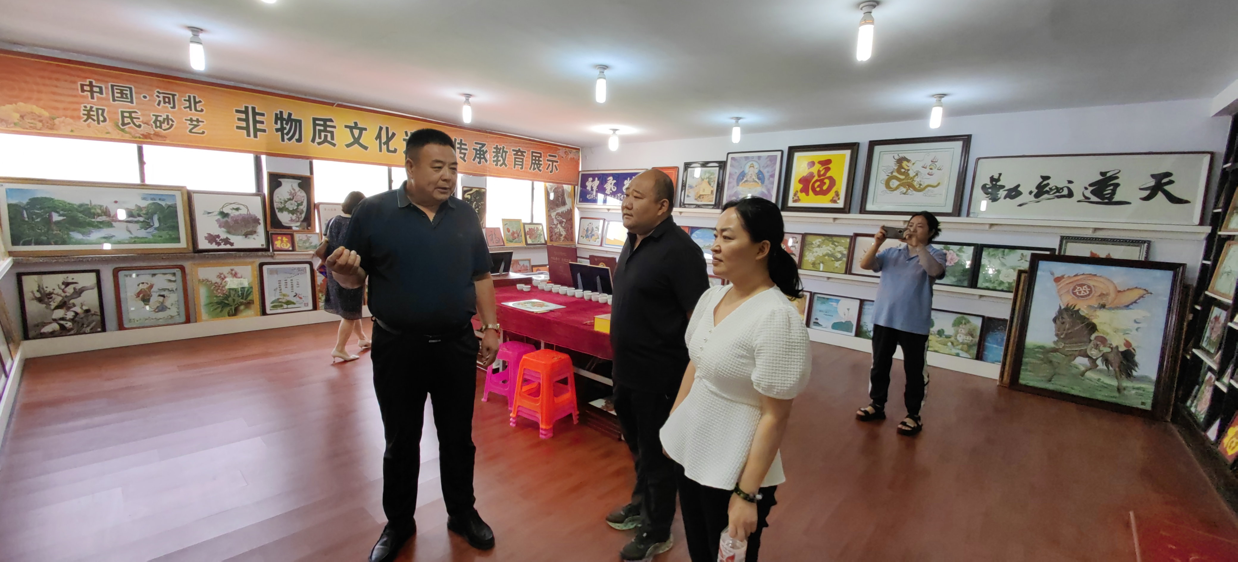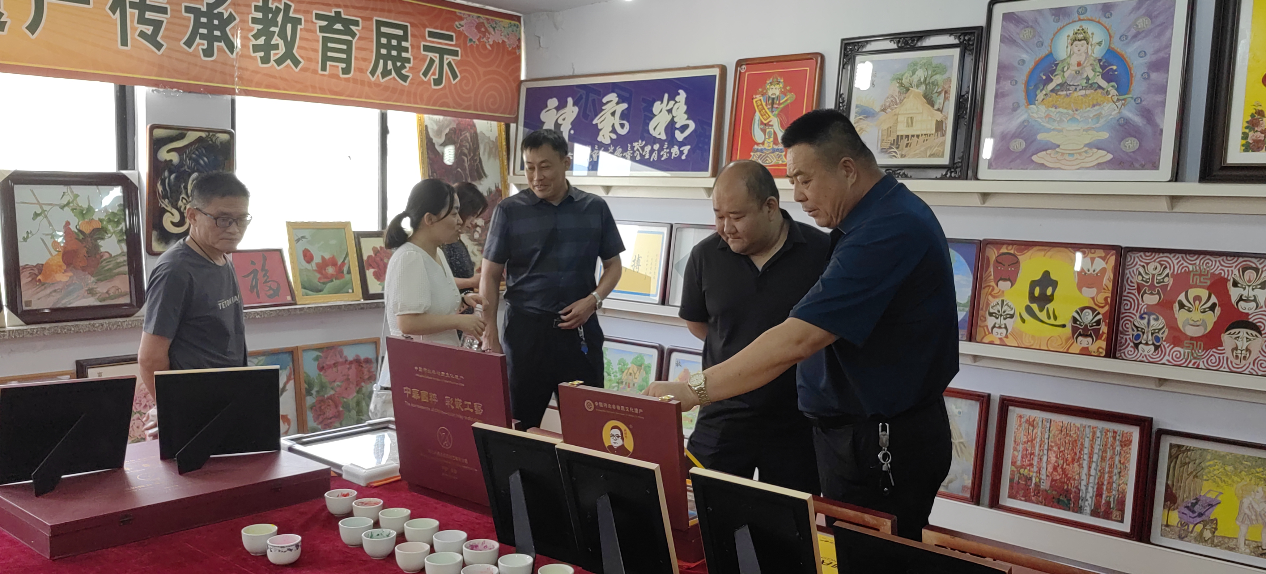 2024年7月9日,避暑山庄博物院副院长研究员蒋秀丹、承德市文物局博物馆科科长杨坤、市文物局博物馆管理科白彬、避暑山庄博物院文物典藏部主任副研究员沈云伟、兴隆县旅游和文化广电局党组成员高子营、兴隆县博物馆馆长闫伟生对兴隆县郑氏砂艺非遗博物馆开展调研考察,考察团在郑氏砂艺董事长郑铁军的陪同下分别参观了郑氏砂艺(画)生产车间、企业文化展馆和郑氏砂艺非遗博物馆,考察团对郑氏砂艺(画)技艺、郑氏砂艺非遗博物馆面积、馆藏文物及配套设施进行了实地参观考察。